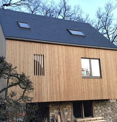 Installation soignée de bardage en bois pour protéger et embellir vos façades avec un style naturel et chaleureux.